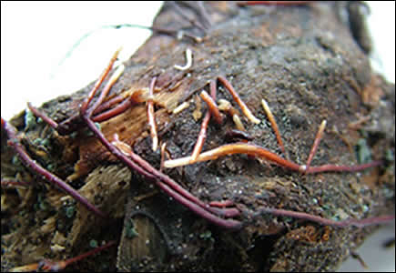 Bootlace like growths can be seen protruding from the root. They will spread through the soil and if other plants are in the same pot they will soon be affected. Eventually toadstools will appear on the soil surface.