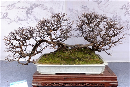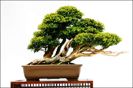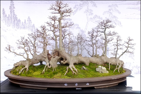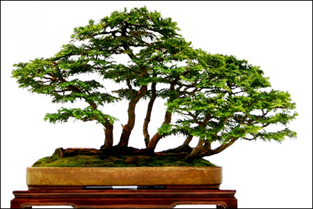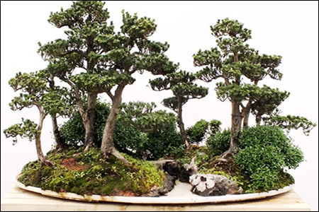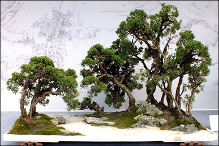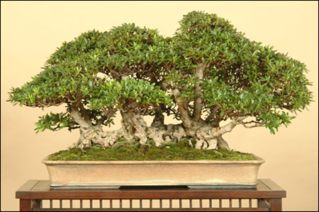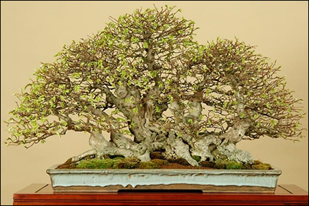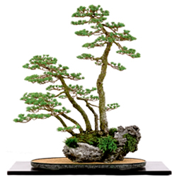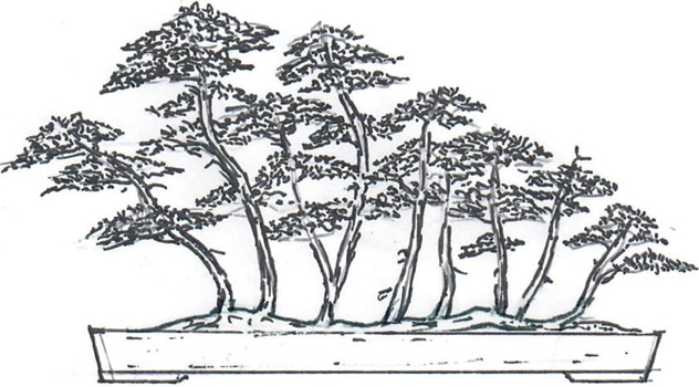 When there is a bend in the trunk, place it so that it curves towards the back; this will give a three dimensional effect. Any horizontal branches may be ground layered and then trained upward to form trees. Some branches will be pliable enough to be bent, while others may need to be undercut with a wedge shape wound in order to train them up vertically.
