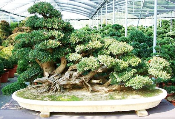 A variation the sinuous style is very similar, however the trunk going along the ground may be curved; this style can be created using a tree with one-sided branches, by laying down the side without branches onto the ground.