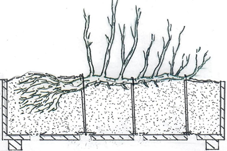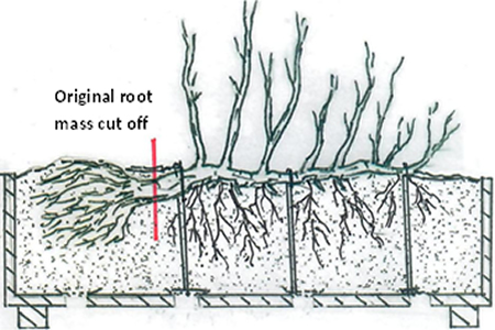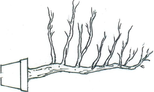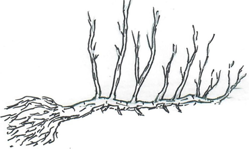 Remove any branches from the underside of the planting; wire all remaining branches normally. Be very careful on the removal of this wire at the first transplanting it may otherwise become entangled with the newly forming root system and hence later, become very difficult to remove.