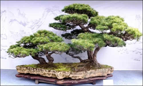 Bonsai uses stones as the base for a tree or trees in the root-over-rock style and for growing-in-a-rock styles, but does not produce landscapes from mixed stones and soil. Saikei concentrate on the production of a natural living landscape, rather than on individual trees as done in bonsai.