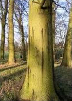 Acute oak decline affects mature English and sessile oak trees (Quercus robur and Q.petraea) of at least 50 years old but has been spotted in younger trees. Acute oak decline is a disease that infects oak trees in the UK. It mainly affects mature oak trees of over 50 years old of both Britain's native oak species: the pedunculate oak and the sessile oak. The disease is characterised by the trees bleeding or oozing a dark fluid from small lesions or splits in their bark.