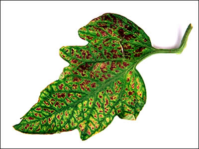 - Yellowing between the leaf veins, sometimes with reddish brown tints and early leaf fall. Magnesium deficiency is common in tomatoes, apples, grape vines, raspberries, roses and rhododendrons.