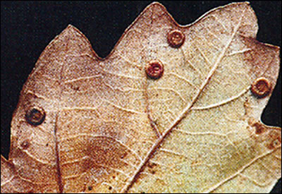 The Larvae secretes chemicals that induce the plant to produce gall tissue. Each disc contains a single grub. They are harmless but unsightly, remove by hand.