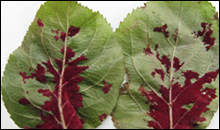 - Plum leaf gall mite: produces swollen whitish or yellowish-green growths on the leaves, especially around the margins and on the
