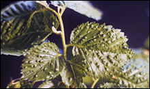 - Birch felt gall mites: causes dense creamy-white hairs to develop on the leaves, mainly on the underside. Leaves are often distorted.