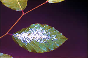 Most of these aphids are species specific and live on only that particular species of plant but they should all be treated in the same way and affected leaves burned and disposed of; they may not kill but they make a serious mess of the trees they attack. They only produce one generation a year except in heated greenhouses where they will continue reproducing throughout the year.