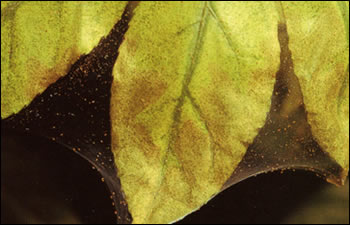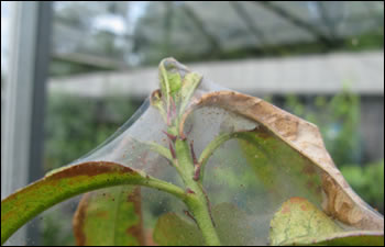 - On plants: In heavy attacks, a fine, silk webbing may be seen on the plants and the leaves can lose most of their green colour and dry up or fall off. Heavily damaged plants can be severely weakened and may die