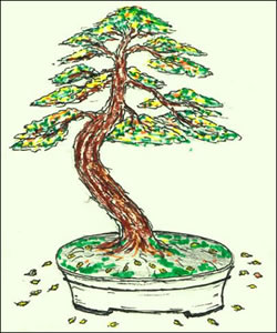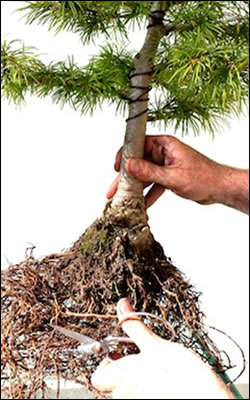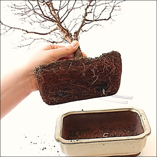 The tree below needs repotting. The root system is too tangled and extensive for the size of the tree.