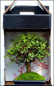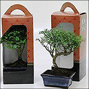 Small bonsai packaged for Christmas; they have been brought in from other climates, (often sub-tropical), unused to our climatic conditions, sealed in little highly decorative boxes and frequently not opened for watering.