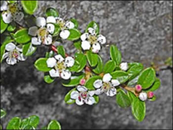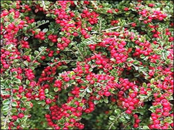 Cotoneaster can be deciduous or evergreen shrubs or small trees, with simple, entire leaves and clusters of small white or pink flowers in spring and summer, followed by showy red, purple or black berries