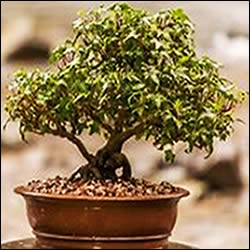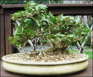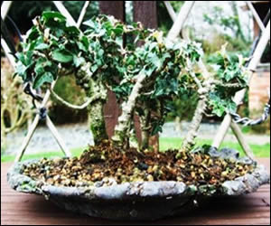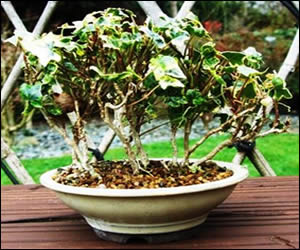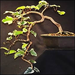 Ivy has alternate 3 - 5 lobed or non-lobed leaves in a variety of colours. Ivy shows two distinct stages of growth. In the juvenile climbing stage, Ivy produces adventitious rootlets, lobed leaves and minute hairy young shoots. In the adult stage however, they produce broader ovate leaves. When styling Ivy as bonsai, it is important to try to keep the foliage consistent by repeatedly pinching out the adult foliage to keep only the juvenile lobed leaves.