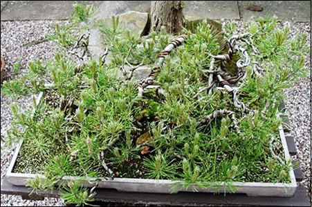 As with other pine species, the number of buds at any one point on a branch is always reduced to two so that the branch forks into two sub-branches. Remove excess buds as and when they appear.
