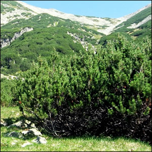 Pinus mugo, known as bog pine, creeping pine, dwarf mountain pine, mugo pine, mountain pine, scrub mountain pine, or Swiss mountain pine is usually found from 1,000 – 2,200 m, occasionally as low as 200 m. It is a species of conifer, native to high elevation habitats across southern Europe.