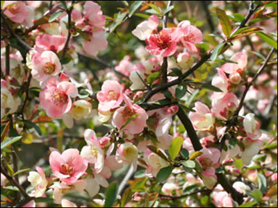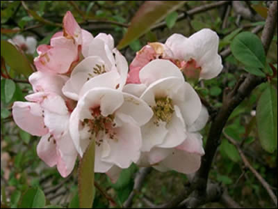 Chaenomeles cathayensis: They originate from China and produce flowers in both pink and white, both shades appearing on the same bush.